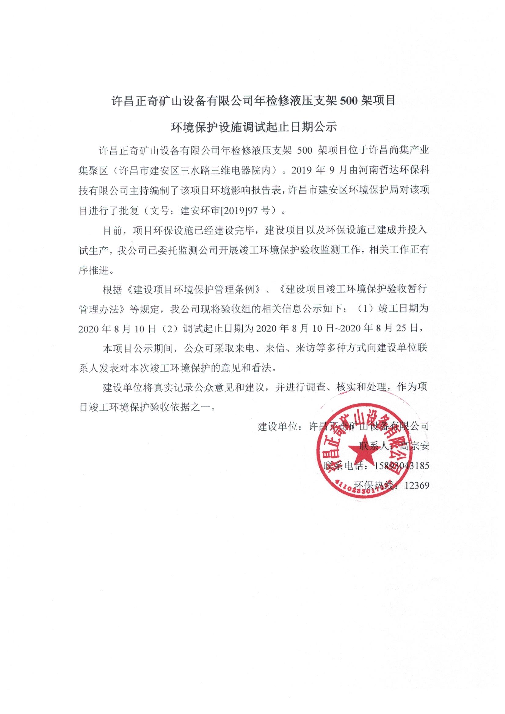 環(huán)境保護(hù)設(shè)施竣調(diào)試起止日期公示
